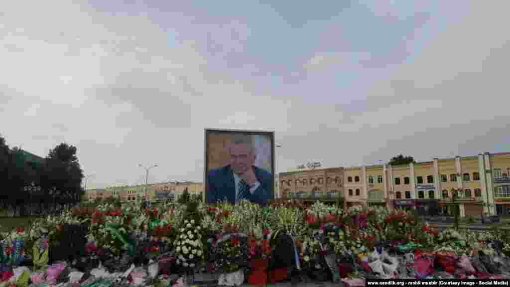 Uzbekistan - people are coming to lay flowers to Islam Karimov in Andijan region