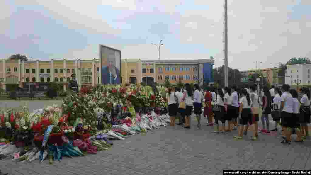 Андижонда одамлар Каримов хотираси учун Бобур майдонига келди