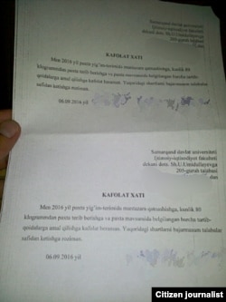 Самарқанд Давлат Университети талабалари пахта йиғим-терими туфайли “КАФОЛАТ ХАТИ” беришга мажбурланмоқда