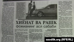 Андижон вилоятида хиёнат йўлига кирган аёл эри томонидан чавақлаб ўлдирилди (“Ҳуқуқ”, 22 февраль).