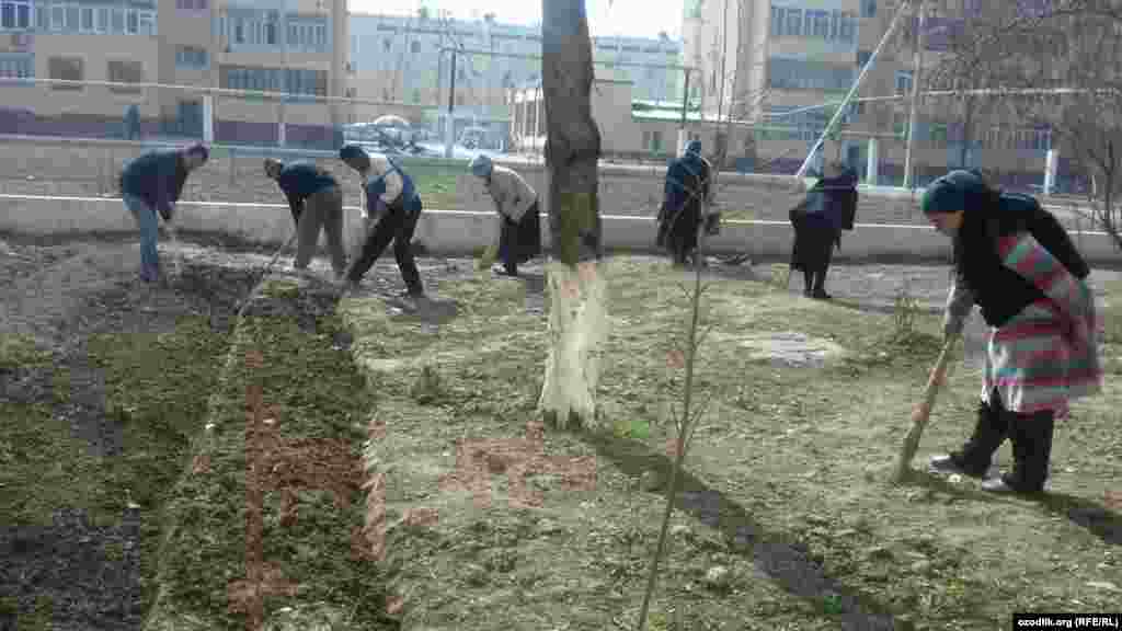 Андижонлик ўқитувчилар шаҳар ҳокими Дилмурод Раҳматуллаевнинг буйруғи билан шаҳар боғ ва кўчаларини тозалашга чиқарилди.