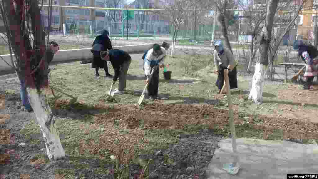 Андижонлик ўқитувчилар шаҳар ҳокими Дилмурод Раҳматуллаевнинг буйруғи билан шаҳар боғ ва кўчаларини тозалашга чиқарилди.