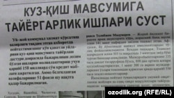 Тошкент шаҳрида кўп қаватли уйларни куз-қиш мавсумига тайёрлаш ишлари суст ва қониқарсиз (“Жамият”, 21 сентябрь). Уй-жой коммунал хизмат кўрсатиш вазирлигига кўра, бу мақсадда 158 миллиард сўм кредит ажратилган. Аммо ҳозирга қадар белгиланган вазифаларнинг 51 фоизи бажарилмаган. Хусусан, Яшнобод, Чилонзор, Сергели, Бектемир ва Шайхонтоҳур туманларида ишлар пайсалга солинмоқда. Пойтахтдаги 1 минг 440 та хусусий уй-жой мулкдорлари ширкатининг 304 тасига молиявий ночорлиги боис имтиёзли кредит ажратилмаган. Қайд этилишича, куз-қиш мавсумига тайёргарлик муаммоларини зудлик билан ҳал этиш лозим.