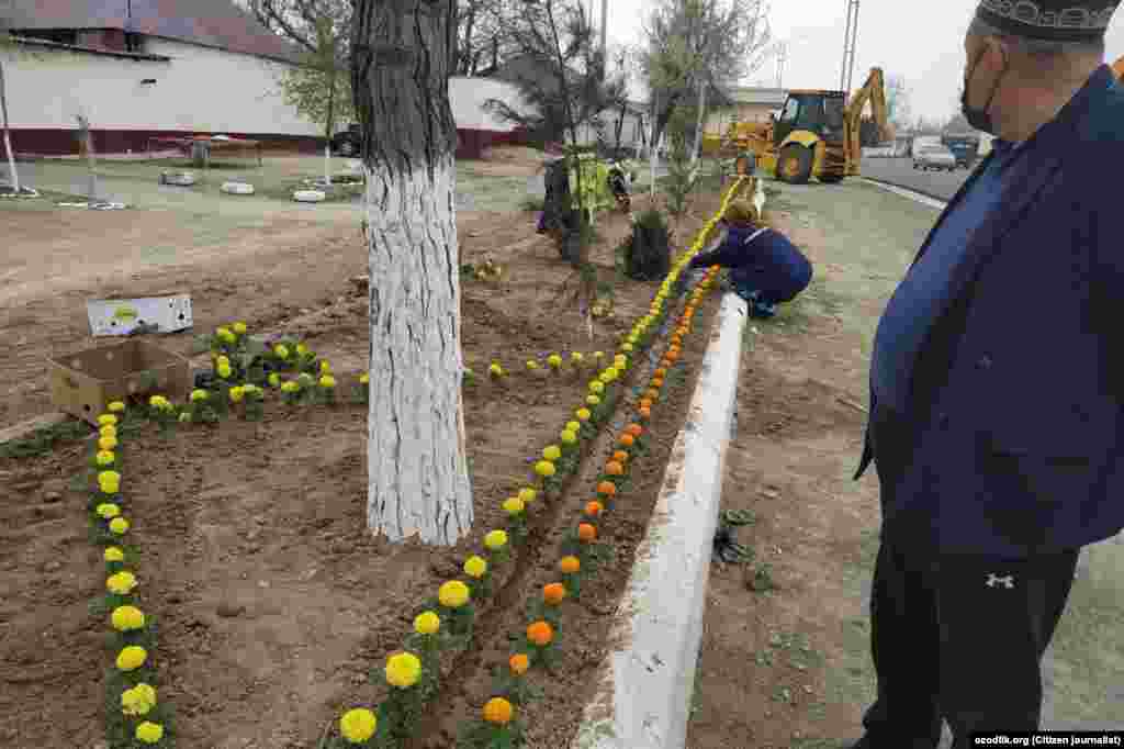 Ушбу фотогалереяда президент ташрифига Файзабод- Марҳамат йўли бўйидаги уйларнинг фасади безатилаётгани, йўл бўйига гуллар экилаётгани акс этган.