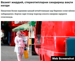 Соғлиқни сақлаш вазирлиги коронавирус тарқалиши юзасидан тақдим этаётган кундалик статистикага нисбатан ишонч кун сайин сўнмоқда (www.kun.uz, 22 июль). “Бу ерда ҳар икки томон ўзича ҳақ – ССВ аниқ ҳужжатлар асосида иш кўради, беморда айнан коронавирусни қайд этувчи тест натижалари бўлсагина, рўйхатга киритади. Ўлим сонлари ошаётганини кузатиб турган аҳоли эса ўзи эшитган ҳодисаларга кўпроқ ишонади”, деб ёзади журналист Аброр Зоҳидов. Шунга кўра, вазирликка коронавирусга чалингани расман қайд этилмаган, аммо яққол белгиларига кўра COVID-19 экани маълум бўлган марҳумларни ҳам алоҳида эълон қилиш таклиф этилган.
