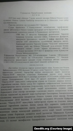 Ўзбекистон Бош прокуратураси матбуот хизмати ҳам Нишон тумани суди ҳукмида тилга олинган маълумотларни Озодликка йўллади.