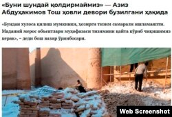 Эслатиб ўтамиз, ЮНEСКО ҳимоясидаги тарихий обида – “Ичан-Қалъа” музей-қўриқхонасидаги Тош ҳовли саройининг қадимий девори бузилгани ҳақида хабар тарқалгач, Маданият вазирлиги бунинг учун илмий-эксперт кенгашидан рухсат олинмаганини билдирди. Пировардида Хоразм вилояти прокуратураси ҳолат юзасидан жиноят иши очди.