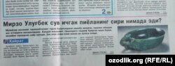 Ўзбекистонда йилдан йилга буйрак касалликлари билан оғриган беморлар сони ортиб бормоқда. Матбуотда дабдабали тўй-маросимлар танқиди кучайди. Британия музейи Ўзбекистонга Мирзо Улуғбек фойдаланган ноёб пиёла нусхасини беради.