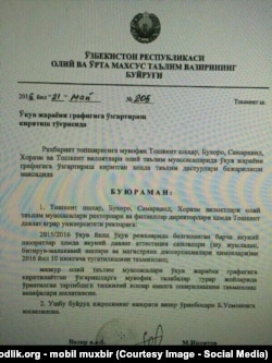 Озодликка жўнатилган ушбу буйруқ нусхасида ёзилишича, жорий ўқув йили режаларида белгиланган барча якуний назоратлар ҳамда якуний давлат аттестация синовлари, жумладан, битирув-малакавий ишлари ва магистрлик диссертациялари ҳимояларини 10 июнгача тугатилиши таъкидланган.